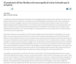 30-1-80 El propietario del bar Menika evitó una tragedia al retirar la bomba que le arrojaron