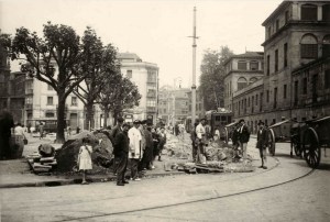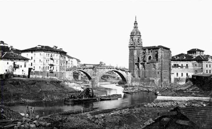 Plazuela Santos Juanes . Llegada de las tropas republicanas tras la retirada de Gipuzkoa. Septiembre 1936. Foto: lubakikoak.com
