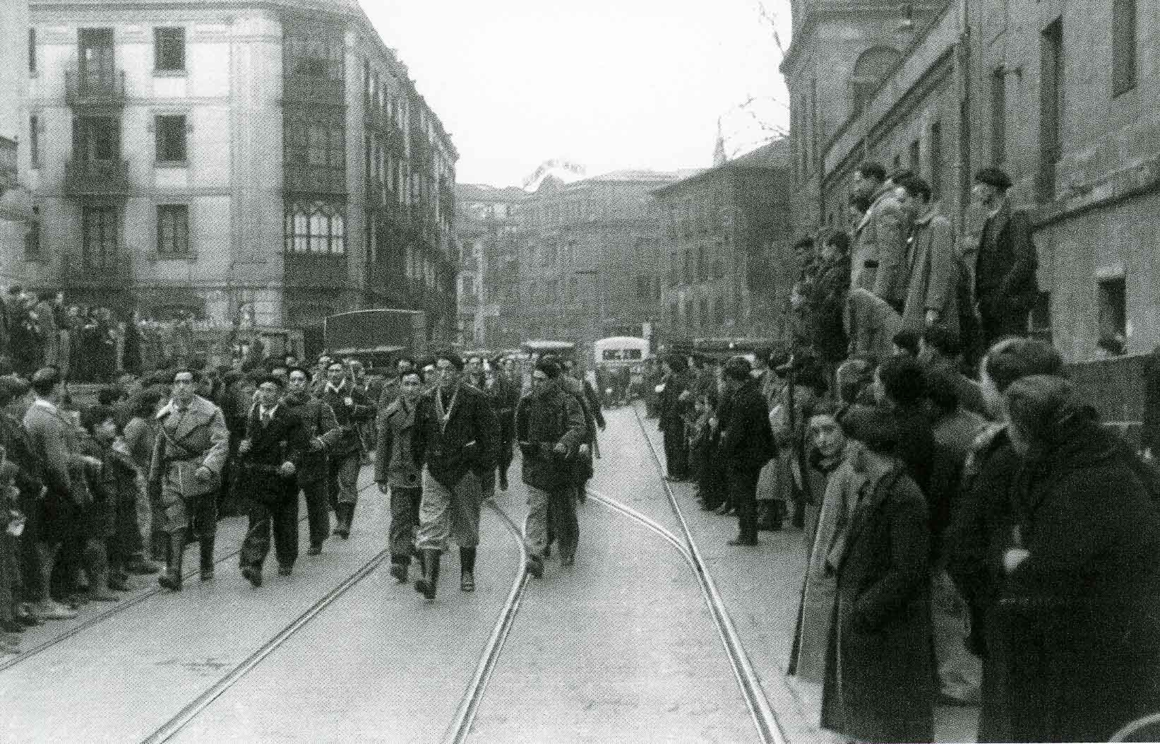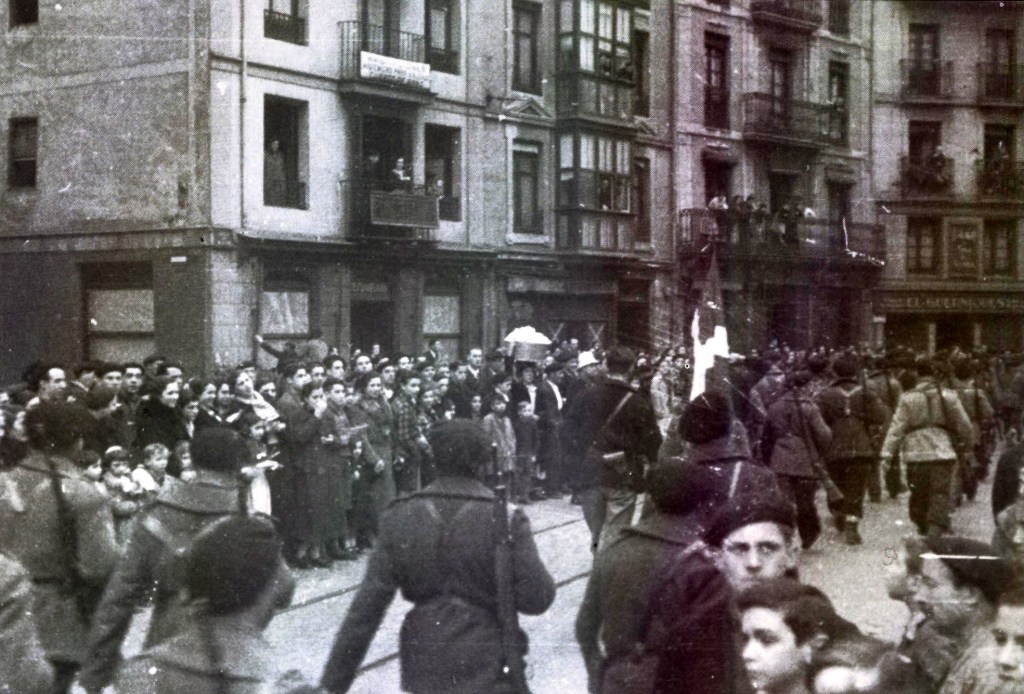 Tropas sublevadas entrando en Bilbao tras la caída de la ciudad. Junio de 1937