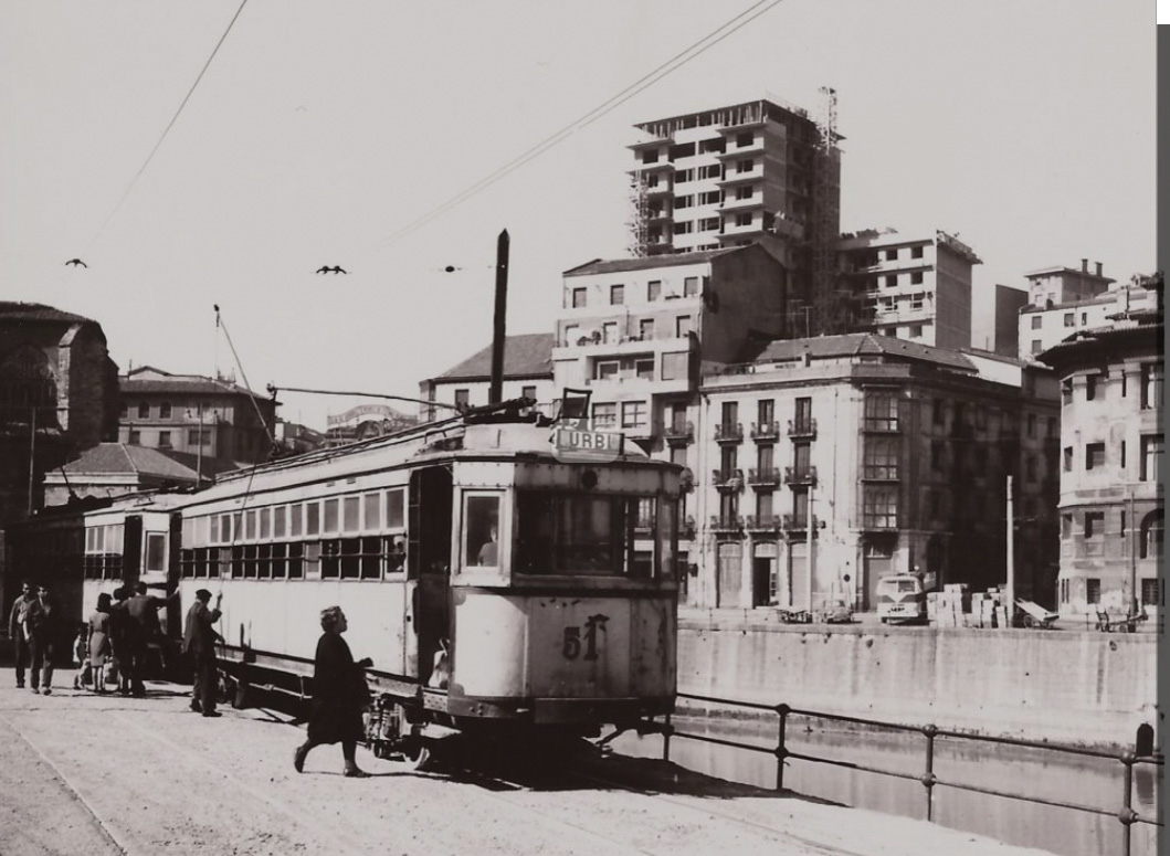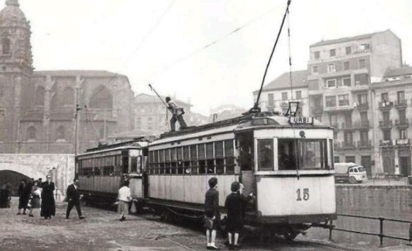 Trolebús en la estación de Atxuri. Foto anterior al 28 de octubre de 1978, cuando hicieron su último servicio.