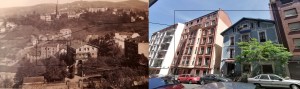 En la foto de la derecha se ve la situación actual (2020) en Iturribide de las casa marcadas en la foto de la izquierda. Foto Kaixo