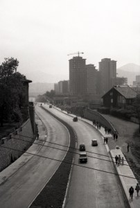 1968 Aprox. Vista de la carretera nacional 634 y Santutxu desde encima de los túneles de Begoña. Archivo Histórico de Euskadi. Fondo Germán Elorza. A la derecha el chalet de la familia Gutiérrez, ingeniero de caminos, puertos y canales.