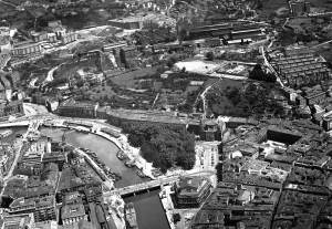 1967 Zona del Ayuntamiento y un poco del parque de Etxebarria. Fondo fotográfico de la empresa FOAT. Archivo Histórico de Euskadi