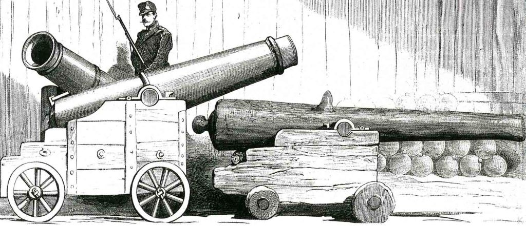 Cañotes tomados a los carlistas en a batería de Artagan. Grabadopor Bernardo Rico en La Ilustración Española y Americana. 1874