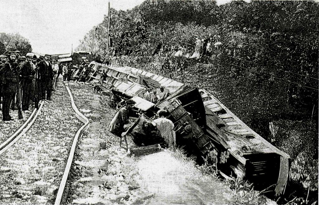 Descarrilamiento del tren de Lezama. Grabado por Bernardo Rico Ortega en La Ilustración Española y Americana 1894. Bilbao en las revistas ilustradas. Javier Viar