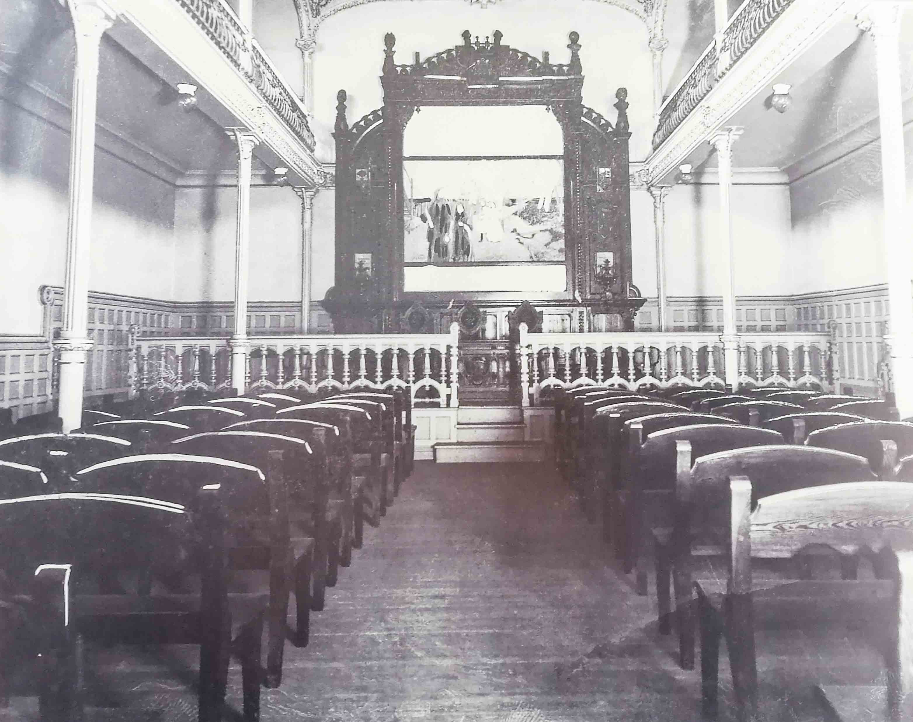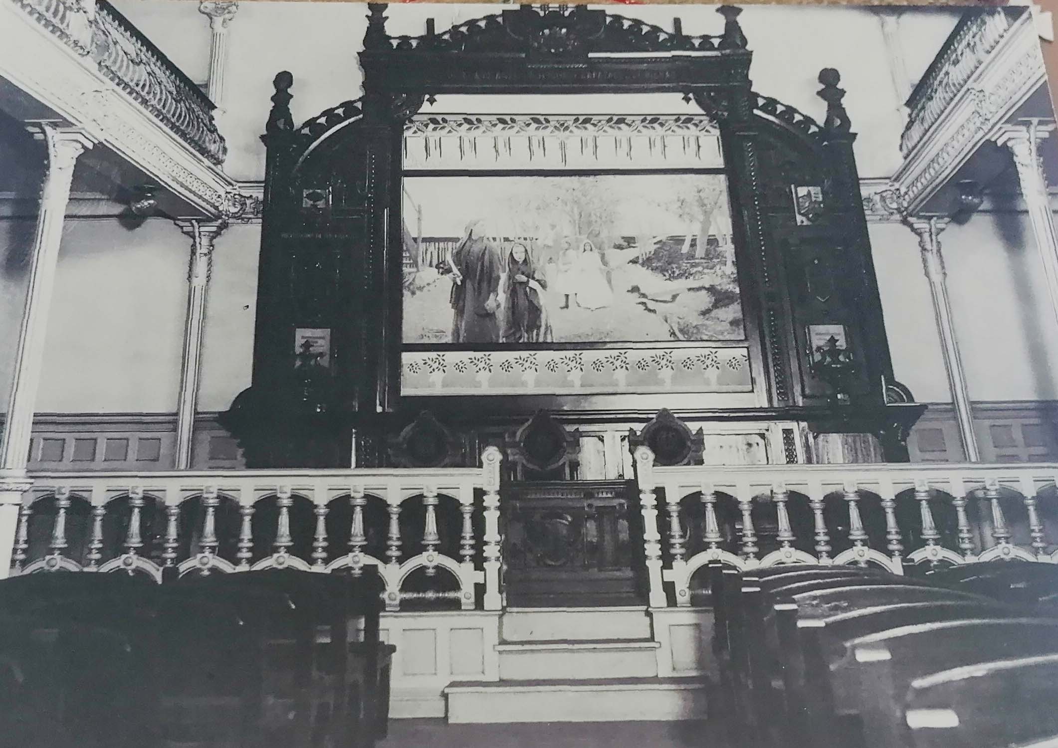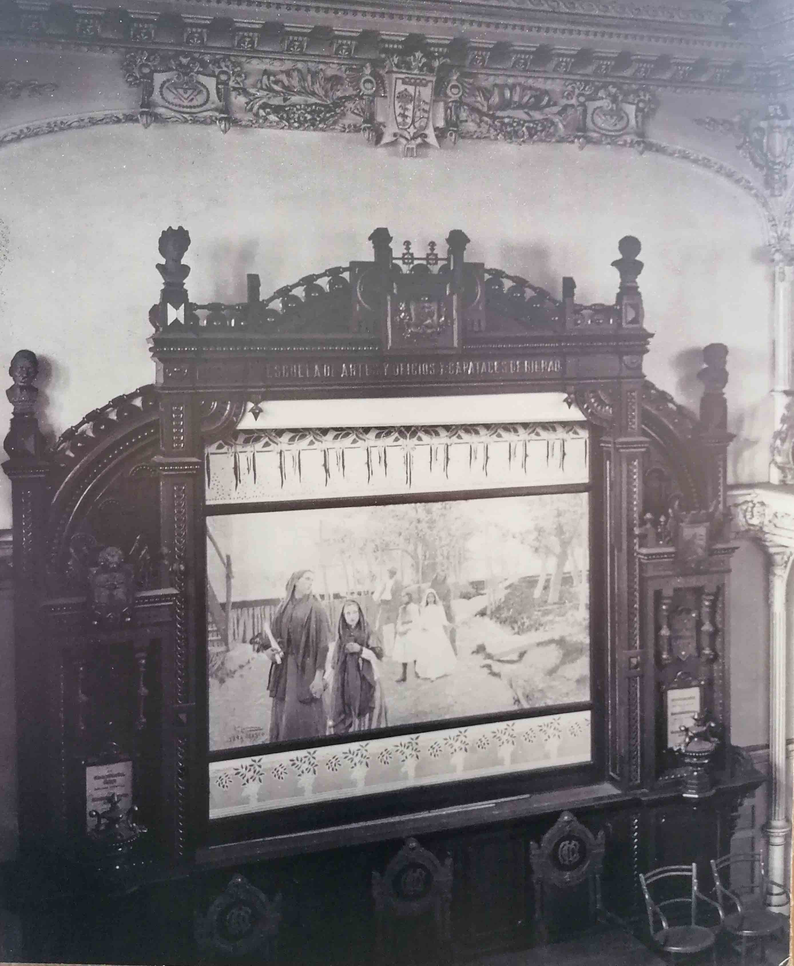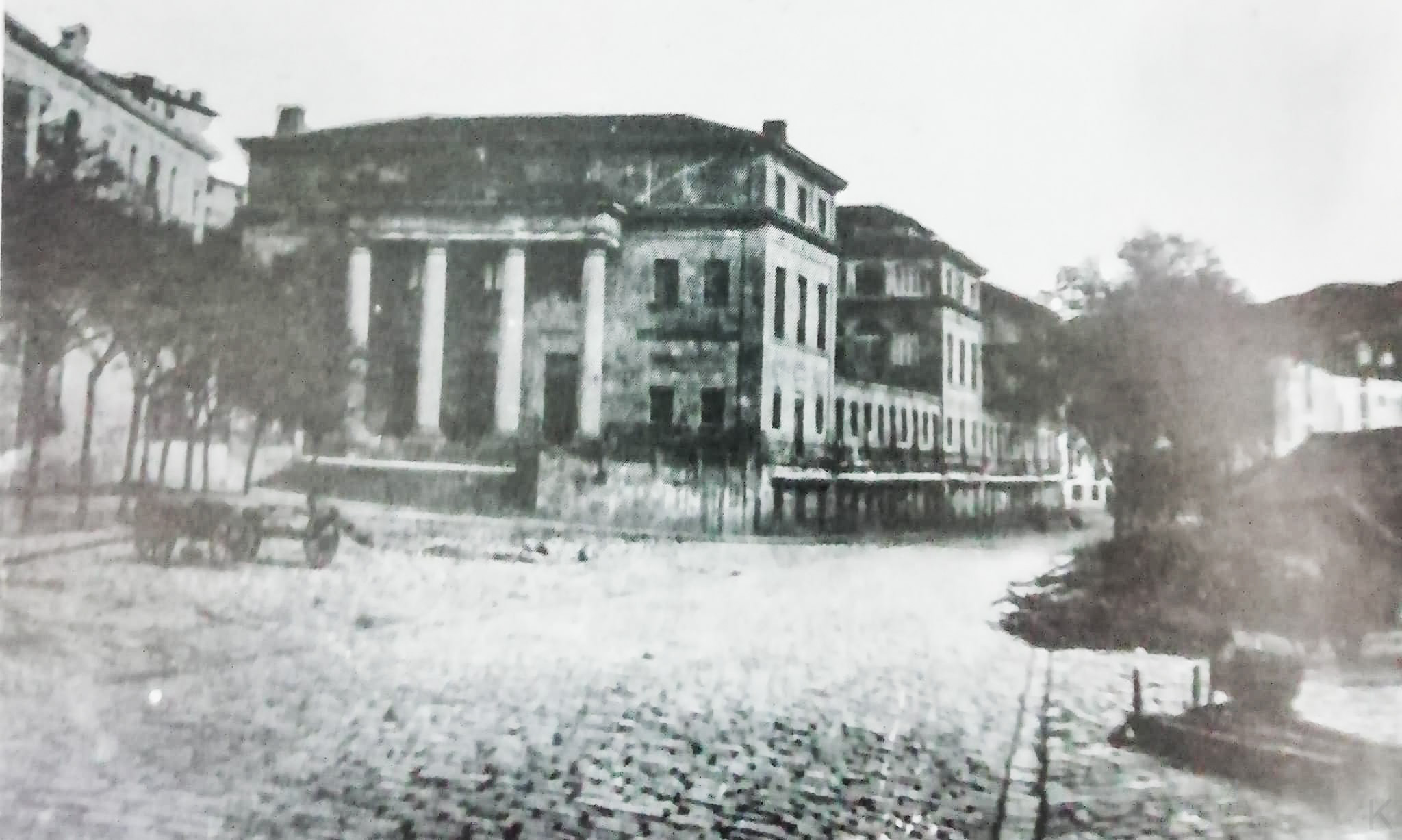 1874. Antiguo hospital de 1835, con sacos protegiendo las ventanas.