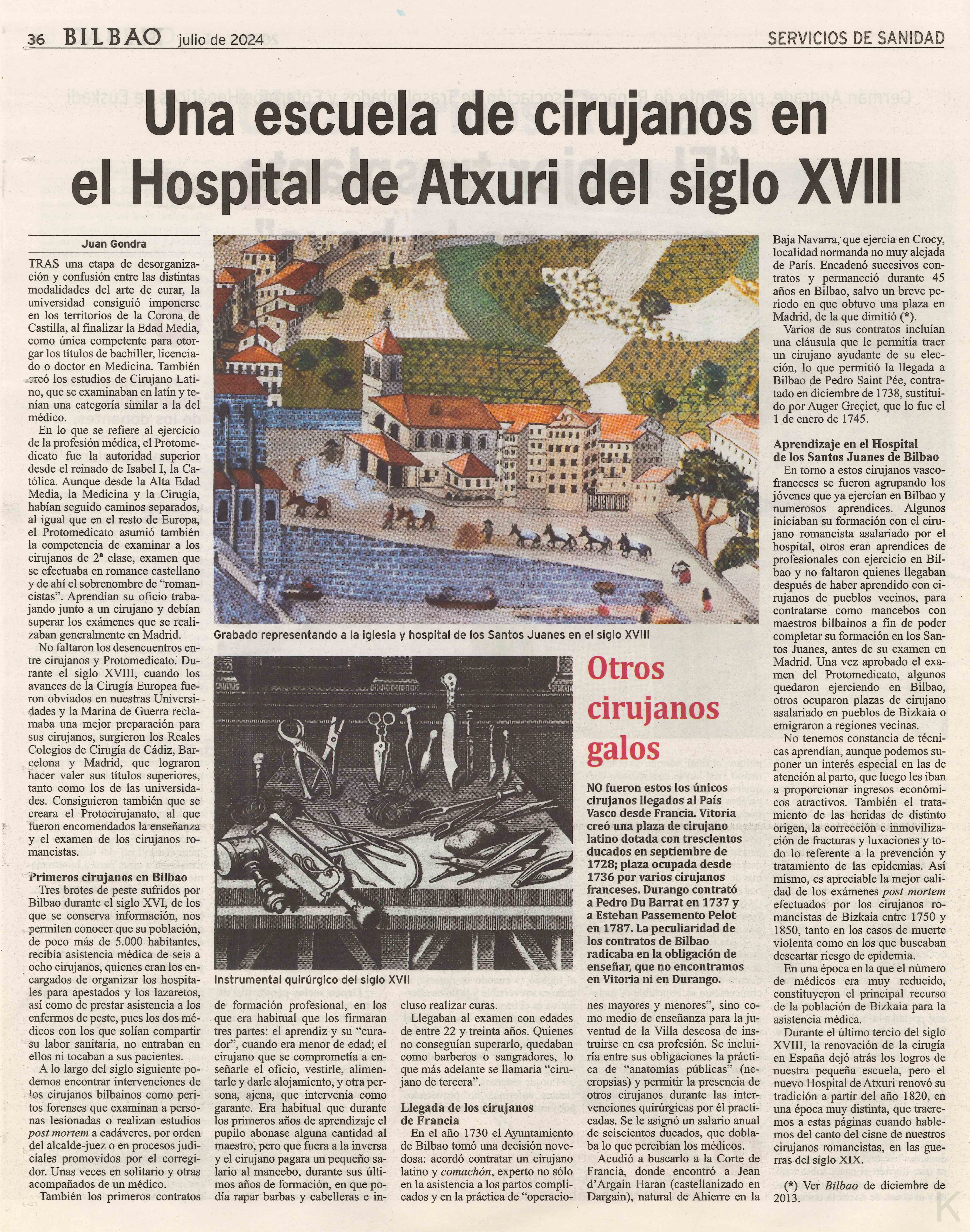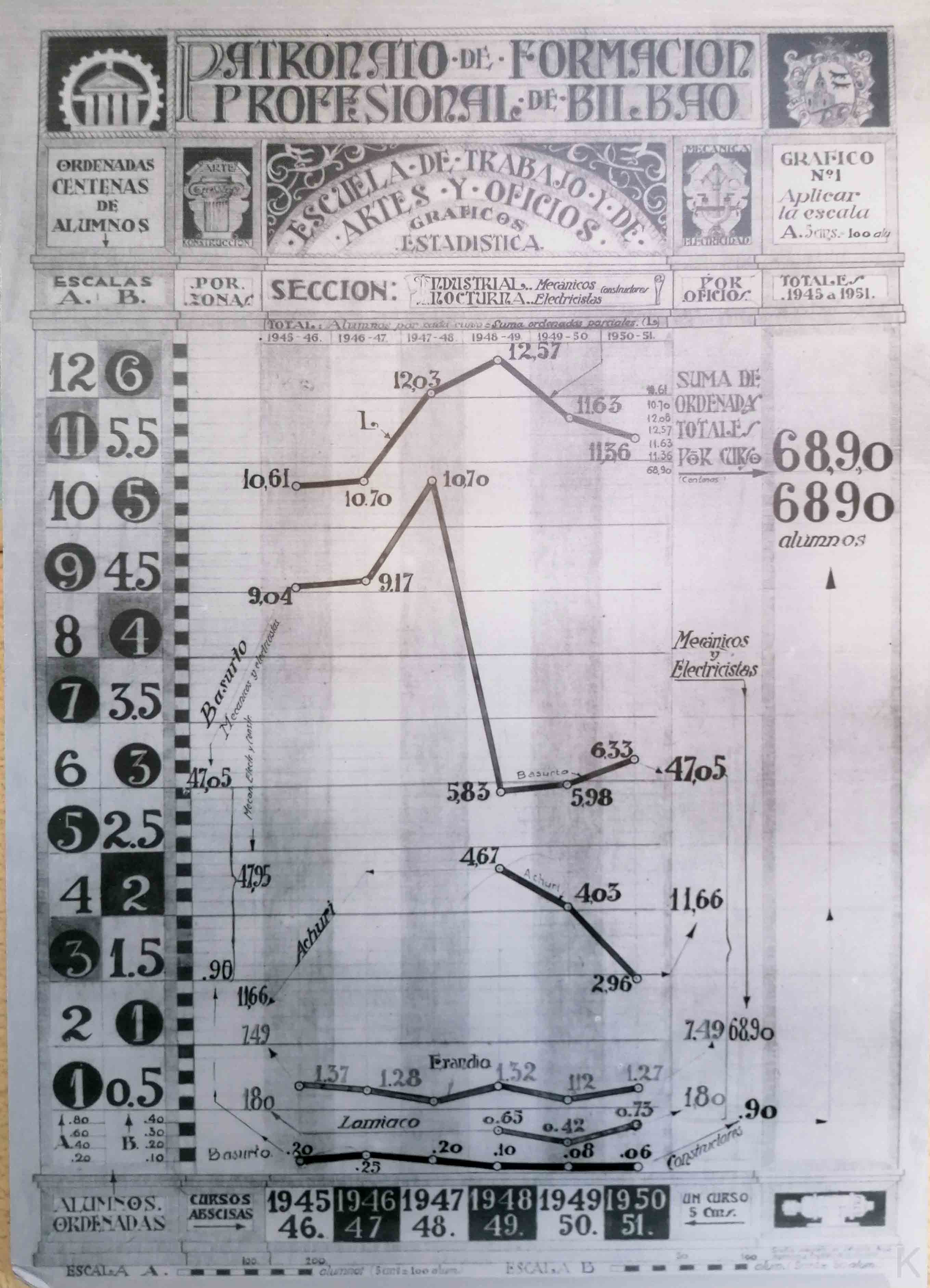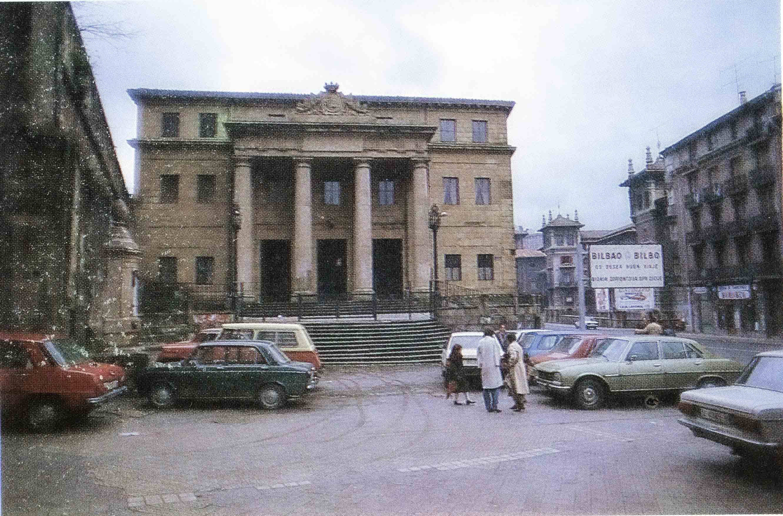 Han dado comienzo las obras del edificio del antiguo Hospital Civil de San Lázaro y San Eusebio, destinado después a Escuela de Artes y Oficios y a Museo. En un principio, en el siglo XV, sirvió para hospicio de peregrinos, y posteriormente, en el año 1661, fue aplicado para la curación de enfermos calenturientos hasta que, el 12 de octubre de 1818, la Junta de Caridad, contando único y exclusivamente con las aportaciones voluntarios de los vecinos de la Villa, se dispuso a acometer la empresa, verdaderamente portentosa, colocando la primera piedra del magnifico edificio que iba a ser Hospital Civil, y que hemos conocido últimamente, con su majestuosa entrada principal por la plaza de los Santos Juanes, que consta de cuatro gruesas columnas sobre las que descansa un tarjetón con la siguiente leyenda: «Enfermos que gemís en la indigencia, aquí hallareis solicita asistencia» Mas tarde, el año 1902, se inició la construcción del actual Hospital de Basurto, y entonces fue cuando el edificio de Achuri se dedicó a fines distintos para los que había sido creado El antiguo Hospital Civil instalado en el edificio que se de arriba, estaba regido por una Junta de Caridad, de caridad auténtico, por cuanto sus miembros velaban por turno, para que de nada careciesen los enfermos. Para el mantenimiento de dicho establecimiento benéfico solo contaba con 24.000 reales anuales de las rentas de sus propias fincas, con una subvención fija de 30.000 reales del Ayuntamiento de Bilbao; y con el producto de una rifa anual autorizada (unos 25.000 reales), además de las limosnas que recibe de los más acomodados y de personas que sentían afinidad con la humanitaria obra del Hospital de Bilbao, que estaba considerado como uno de los mejores de España. La Excma. Diputación Provincial de Vizcaya y el Excelentísimo Ayuntamiento de Bilbao, propietarios del edificio, han condicionado su donación a que, en su derribo, sea respetada la fachada principal del mismo; levantándose, en su lugar, por iniciativa del Ministerio de Educación Nacional, uno moderna construcción destinada a Escuela de Trabajo, para cuyas obras se han presupuestado nueve millones de pesetas. Imagen y texto del boletín estadístico de la villa en el archivo municipal.