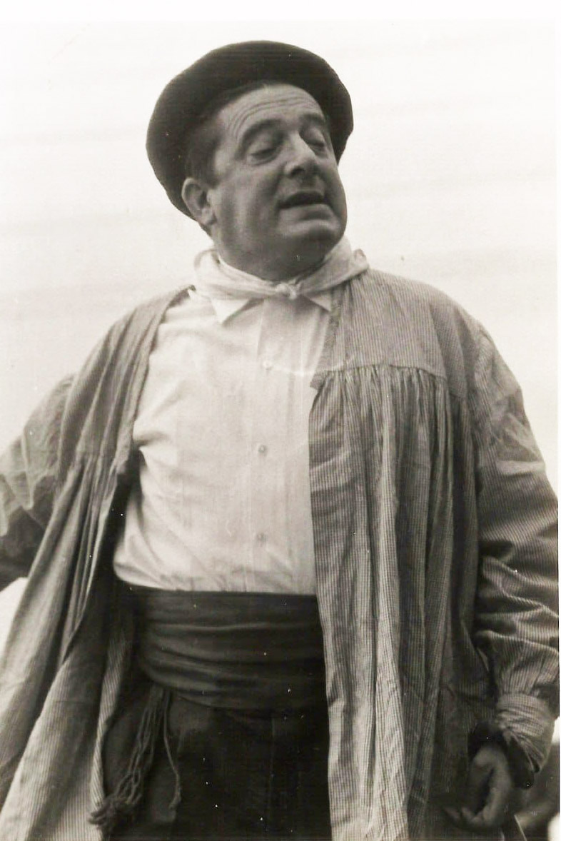 Vestido con el traje de su personaje más popular. Txomin del Regato. Foto familia Prados